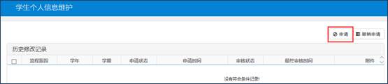 2.在“学生个人信息维护”界面右上角,点击【申请】按钮。