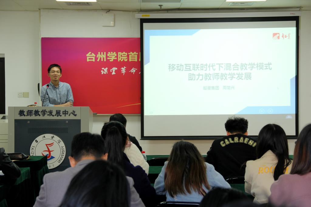 本周二下午,校教师教学发展中心研讨室内,50多名助讲认真聆听学习了超星教育集团周龙兴带来的“移动互联网时代下混合教学模式助力教师教学发展”讲座。