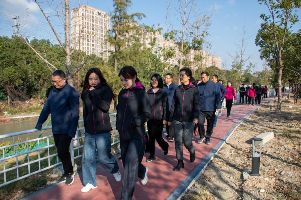 校党委书记崔凤军、纪委书记吴国庆、副校长李钧敏、临海校区管委会主任张辉参加了椒江校区的健步走活动。下午2点暖阳高照,虽然伴随着阵阵寒风,但似乎难以阻挡人们参与健步走活动的热情,大家在图书馆合影后,沿着学校绿道行走,途经教学楼、行政楼、图书馆和心湖,大家脸上洋溢着欢快的笑容,享受着健康运动带来的身心愉悦,行走的人群成了一道移动的风景,展现出机关干部积极向上的精神风貌。活动结束后,大家又返回工作岗位,积极投身工作。大家纷纷表示将会以更加饱满的热情和脚踏实地的行动积极工作,在学校事业发展中再立新功。