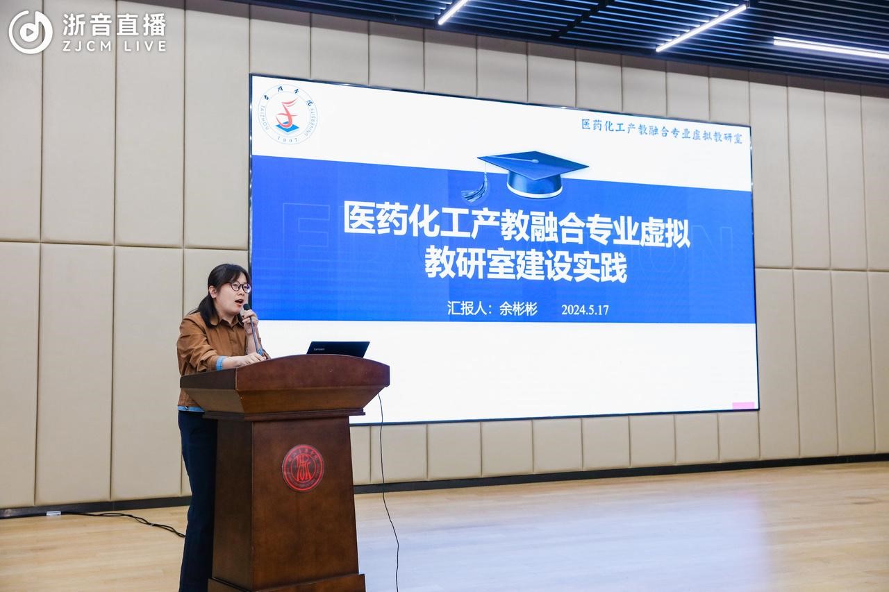我校教务处选派校督导和业务科室人员参加会议,医药化工学院副院长余彬彬代表台州学院在会上分享了医药化工产教融合专业虚拟教研室建设实践案例,从建设背景、建设基础、工作实践和未来规划等四方面分享了基层教学组织建设的经验成果,教研室以产业需求为驱动、产教融合为路径、虚实接合为方式,着重在课程教材一体化建设、优质资源共享、科技服务一体化、思政融合、专业建设等开展实践。