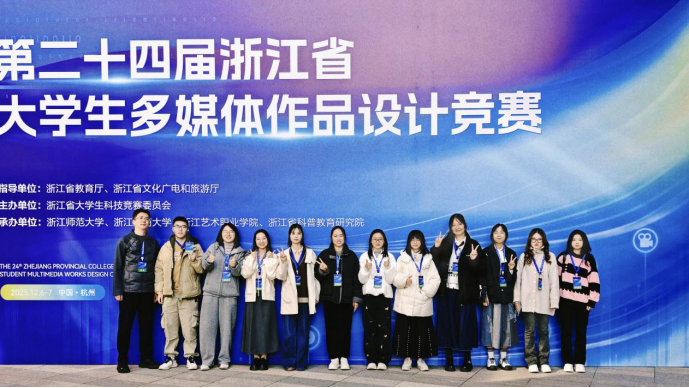 近日,第二十四届浙江省大学生多媒体作品设计竞赛决赛在浙江艺术职业学院圆满落幕。历经校级遴选、省级初赛的层层筛选与决赛激烈角逐,我校学子凭借扎实的专业功底、新颖的创意构思与出色的实践能力脱颖而出,斩获一等奖1项、二等奖3项、三等奖10项,总计14组作品获奖,用实力彰显青春风采,为校争光!