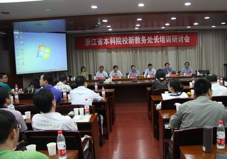 7月9日至10日,浙江省本科院校新教务处长培训研讨会在我校举行。省教育厅高教处副处长王国银、我校副校长陈光亭出席,省高教学会教学管理专业委员会常务副会长楼程富主持。浙江大学本科生院常务副院长陆国栋、省教育评估院院长施建祥、浙江工业大学教务处处长计伟荣、省教育厅高教处副处长雷群芳等教学管理专家作辅导报告;省内各本科院校新任教务处处长、副处长参加会议。