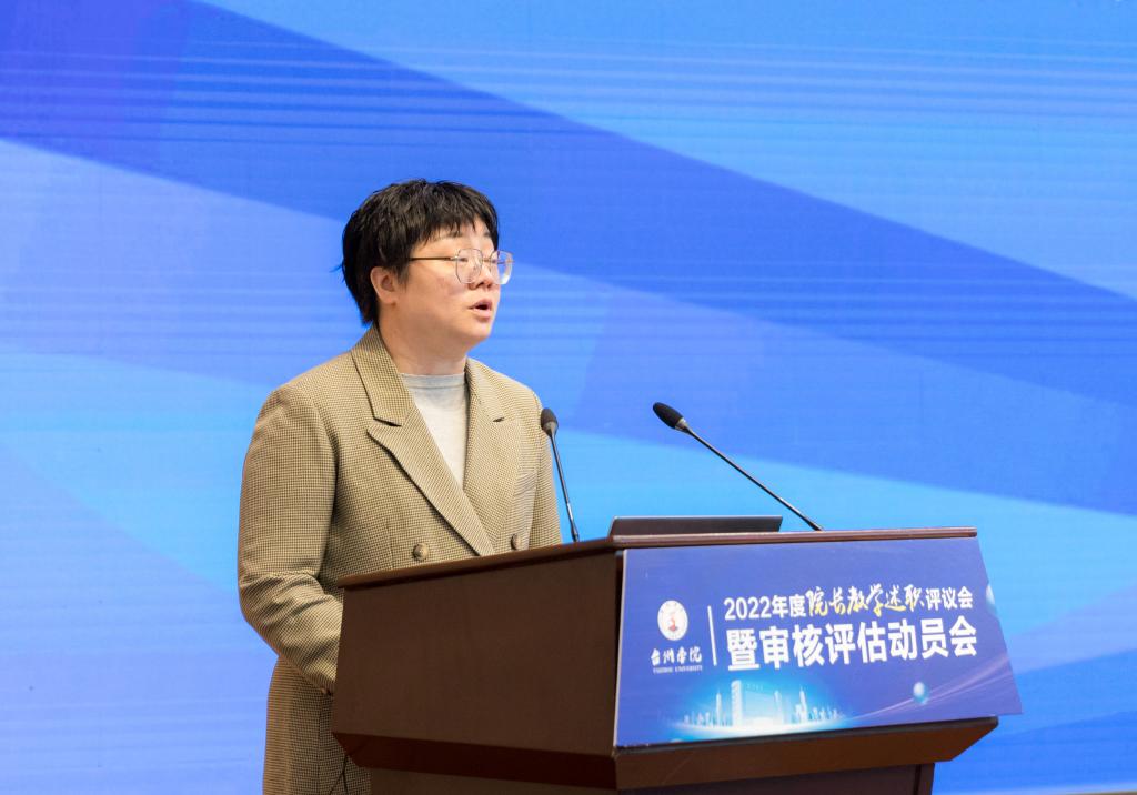 2022年度院长教学述职评议会暨审核评估动员会于3月7日下午在椒江校区国际会议厅举行。校领导崔凤军、潘通天、金先龙、赵小明、王正、胡韶光、李伟明、杨健国、金松出席,校党委委员、校长乐传永讲话;校党委委员、副校长李钧敏主持。
