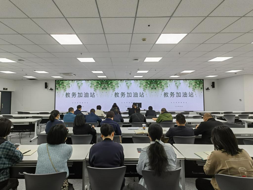 4月3日下午,第九期“教务加油站”在椒江校区一号教学楼213直播教室举行。教务处处长金凌虹主持,教务处全体成员参加。
