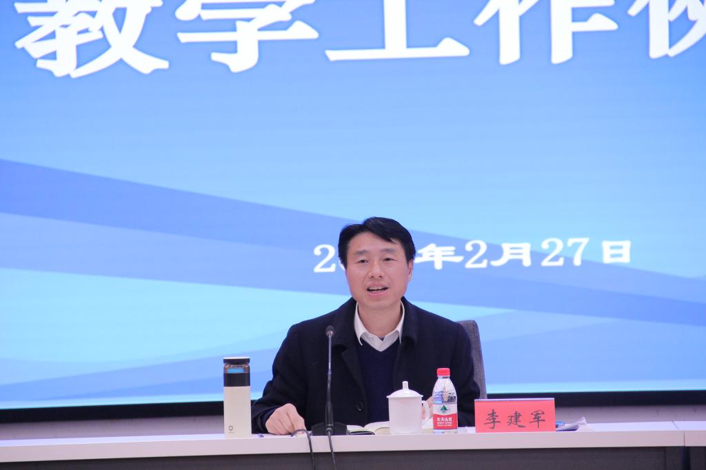 2月27日下午,新学期首次教学工作例会在椒江校区行政楼四楼会议室举行。校党委委员、副校长李建军出席并讲话。教务处处长金凌虹主持工作例会。
