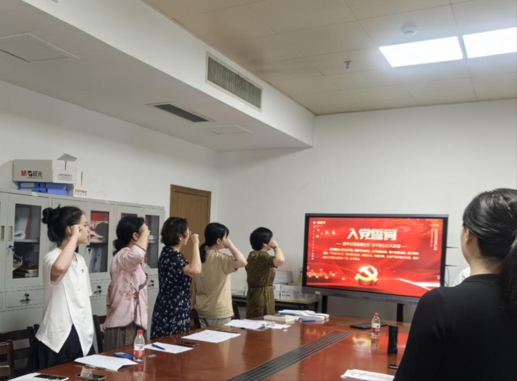 接着,为进一步增强全体党员的党性意识,重新审视共产党员初心,金凌虹书记带领全体党员集体重温入党誓词,在党旗下郑重宣誓,每一位党员的身心得到了洗礼,让党员不自觉地回想起自己的入党历程,重新审视自己的信仰和追求,从而更加坚定共产主义信念,增强党性修养,提升政治觉悟。誓词中的廉洁自律的要求更是契合了上级党组织对于加强廉洁学习教育的新要求,提醒党员时刻保持清醒头脑,严格遵守党的纪律和规矩,自觉抵制各种腐败现象和不良风气的侵蚀。这对于营造风清气正的党内政治生态具有重要意义。