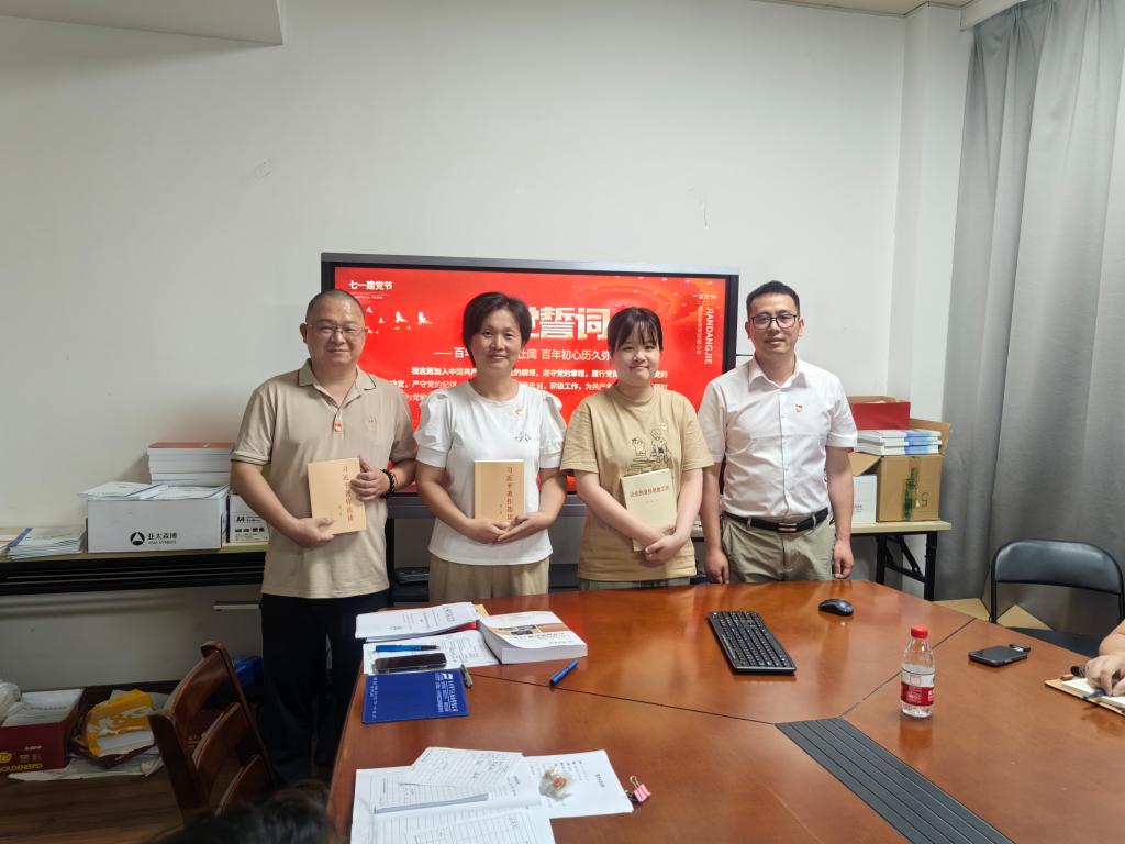 宣誓完毕,全体党员齐过政治生日,支部副书记蒋胜韬为六到八月份入党的同志赠送了政治学习读本,并邀请他们在会上交流心得和体会。