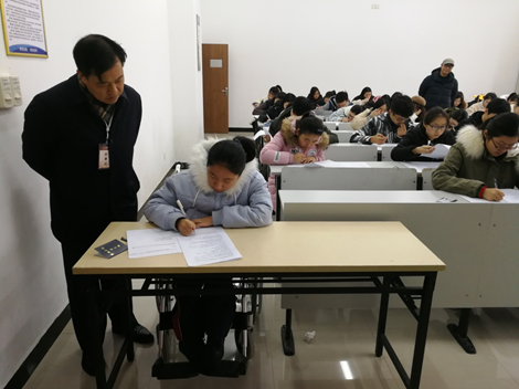 1月7至11日期末考试期间,校领导在教务处等职能部门负责人陪同下,在椒江、临海校区各考场进行巡视,检查考试情况,指导考务工作。