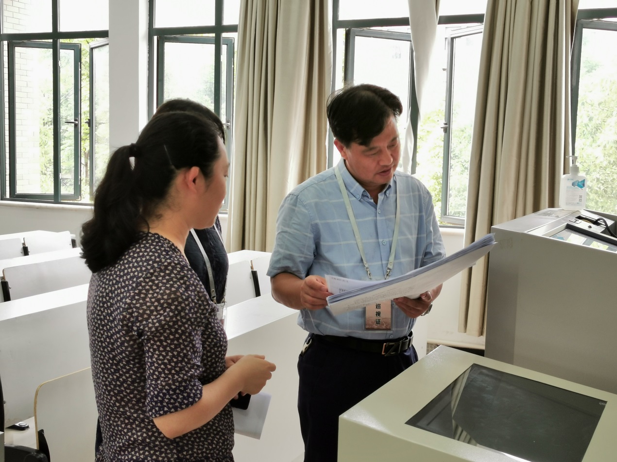 6月29日,为期5天的2019-2020学年第2学期期末集中考试拉开帷幕。校党委书记崔凤军、校长陈光亭近日在校办、教务处有关领导的陪同下,对期末考试考场进行巡视。