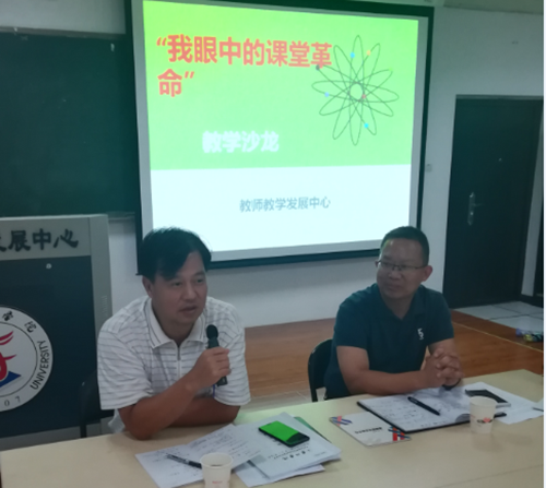 9月7日,在第34个教师节来临之际,为切实推进教育理念和教学模式的革新,校教师教学发展中心举办“我眼中的课堂革命”主题教学沙龙活动。副校长陈光亭应邀出席;教务处副处长李银丹主持沙龙。学工部、教务处、国有资产与实验室管理处、信息技术中心、图书馆等部门负责人及二级学院教师代表30余人参加本次沙龙。