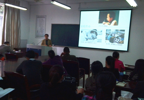 陈盈老师以“基于微信的翻转课堂实践”为题,从课程设计和学情分析切入,与老师们分享了自己在微信公众平台支持下开展“翻转课堂”教学的经验和体会。 陈盈表示,将当前碎片化学习现状和基于微信平台的翻转课堂特点相结合,学生可以通过现代信息技术使用优质的教育资源,把传统的学习过程翻转过来,课堂内注重知识内化过程,而将知识传授过程放在教室之外。“翻转课堂”改变传统教学中信息量大,学生难以消化、疲于上课等缺点,体现“以学生为中心”的教学理念, 从而激发学生学习兴趣和自主学习能力,提高学习效率。