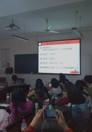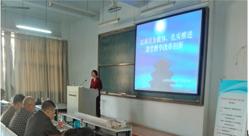 4位主讲教师结合自己主持的省级教改项目,介绍了课堂教学改革具体做法,分享在课堂教学改革与创新方面的探索与实践体会。范剑老师的现场案例教学和分组学习模式,孙运旺老师积极尝试的准课堂教学法,严明贵老师设计的写作接力棒和学生自我评价表,蔡金明老师构建的课堂教学与课外活动一体化方案等,均取得较好的改革成效,受到学生的欢迎和好评,也给参加培训的教师留下深刻印象。本次培训内容在推进课堂教学改革与创新方面起到了较好的示范引领作用。