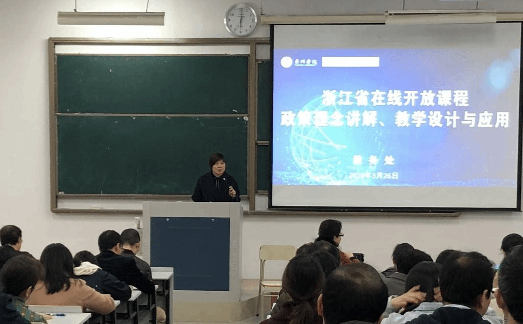 张卫群副总经理围绕为什么建、建什么与怎么建三个问题,对浙江省精品在线开放课程相关政策、线上课程设计与应用、立项评审等方面进行了解读。语言热情洋溢,讲解要点紧贴教师教学需求,案例分析深刻翔实,现场互动频繁,氛围可谓酣畅淋漓。