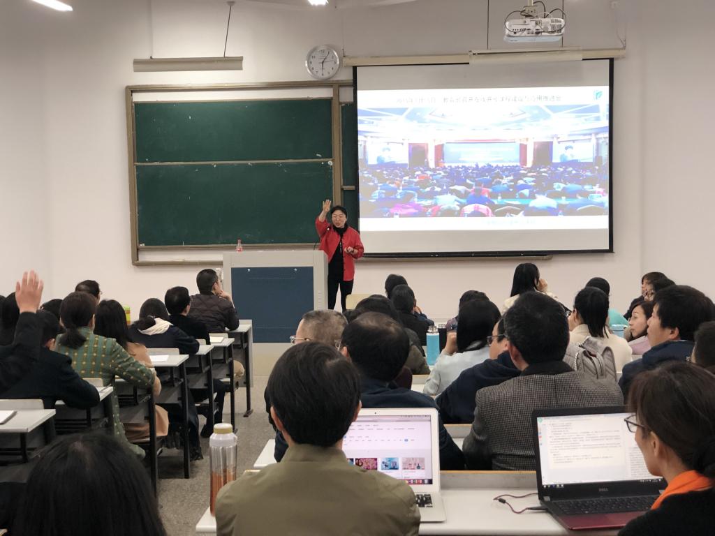 金凌虹副处长指出,我校积极响应并致力于贯彻落实教育部、省教育厅建 “金课”挤“水课“的相关文件精神,引进网络教学平台,建设智慧教室,实施在线开放课程建设“十百千计划”,多举措激发教师参与热情。成效明显,近期喜讯频传。希翼继续与教师们聚力,推动我校教学质量“变轨超车”。