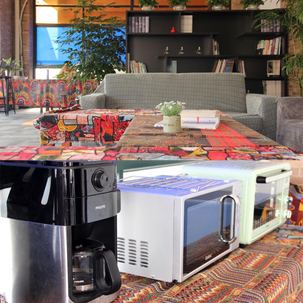 与此同时,超星集团还赞助中心休闲桌椅、咖啡机、烤箱、微波炉、冰箱等设施。无论是课间空闲还是中午小憩,老师们都可以来到教学中心品咖饮茶、休息交流。我们也欢迎老师们闲暇时来中心烘焙或分享家中闲置的茶叶、咖啡、小零食,等等。