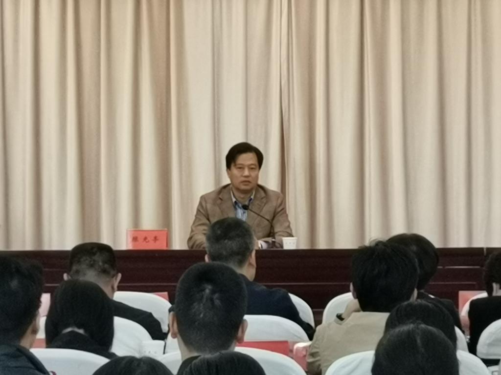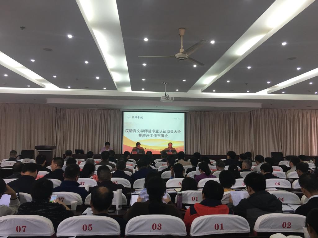 陈光亭作动员讲话并提出四点要求:一要统一思想、提高认识,贯彻落实全国本科教育工作会议精神,重视师范专业认证的机会;二要明确站位、强化责任,要站在学校发展的大局去看待专业认证工作,将其视为学校立足台州发展的生命线去理解和把握;三要严格对标、精准落实,以师范类专业认证为重要契机,每一位师生和干部职工都要清楚了解师范类专业认证标准,吃透标准,清楚地认识和找准自身在相关环节中的任务责任;四要全员参与、聚合聚力,汉语言文学专业作为我校第一个接受师范认证的专业,对后续师范专业认证工作的开展具有重要意义,各单位各部门要齐心合力、分工合作,以良好的精神状态和充分周到的准备迎接专家组的到来。