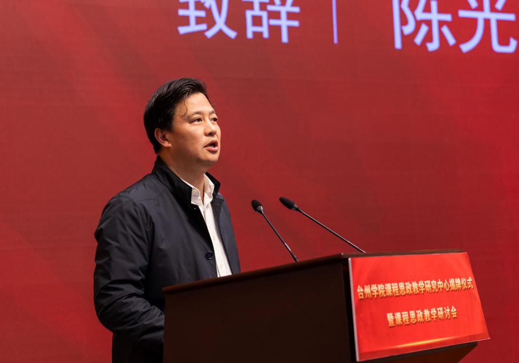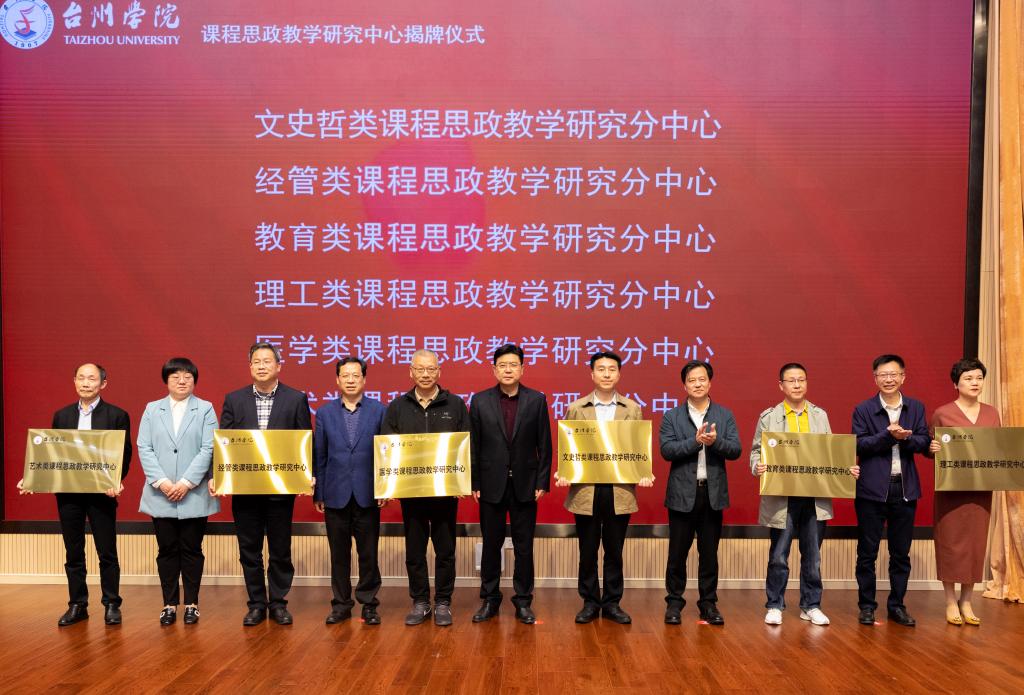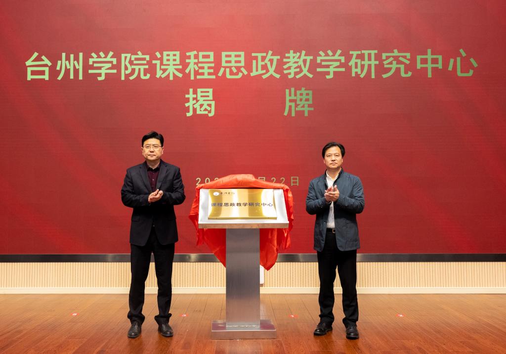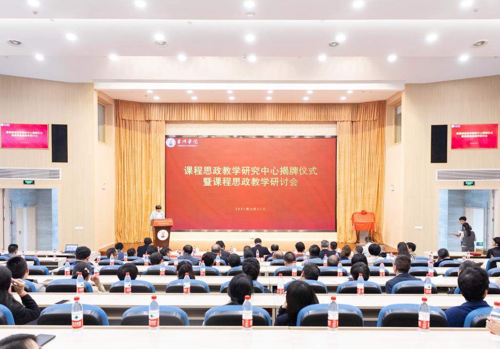 4月22日下午,台州学院课程思政教学研究中心揭牌仪式暨课程思政教学研讨会在椒江校区国际会议厅隆重举行。校党委书记崔凤军、校长陈光亭共同为课程思政教学研究中心揭牌。校党委副书记潘通天、校党委委员、宣传部部长金松、台州市委宣传部理论处处长董建斌、台州市教育局高教处处长郑琳出席。课程思政建设工作专班成员、中心负责人、教学副院长、基层教学科研组织负责人等近百人参会。副校长李钧敏主持活动。