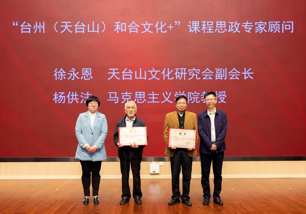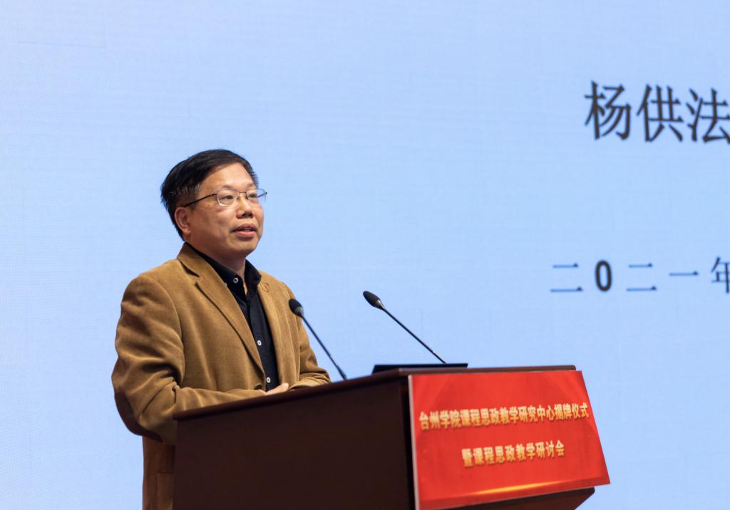 揭牌仪式上,李钧敏宣读了关于成立台州学院课程思政研究中心的通知。与会校领导还分别为文史哲类、教育类、经管类、理工类、艺术类、医学类等六个课程思政教学研究分中心授牌。李钧敏和金松为课程思政专家顾问颁发聘书。椒江区社科联秘书长陈道平、天台山文化研究会副会长徐永恩、华海药业股份有限公司技术副总朱伟和我校教师盛跃明、杨供法、林新峰被聘为台州学院课程思政研究中心首批课程思政专家顾问。仪式后的教学研讨会上,盛跃明、杨供法、林新峰分别围绕大陈岛垦荒精神、台州(天台山)和合文化、台州民营企业工匠精神等主题作了报告。