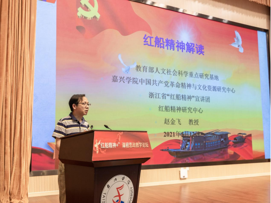 在“红船精神解读”的主旨报告中,赵金飞教授围绕红船精神的历史由来、深刻内涵、历史地位和时代价值,从历史和现实的角度,引经据典、谈古论今,以轻快的语气,详细阐述了红船精神“开天辟地、敢为人先的首创精神;坚定理想、百折不挠的奋斗精神;立党为公、忠诚为民的奉献精神”的深刻内涵;他指出,“红船精神”是中国共产党革命精神之源、先进性之源,集中体现了中国共产党的建党精神,其时代价值永不过时。
