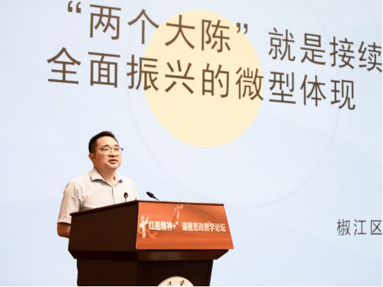 陈道平作了题为“’两个大陈’”就是接续推进乡村全面振兴的微型体现”的主题报告,他描述了大陈岛当前高质量的发展格局,提出接续推进更加美好的“现代化的大陈”建设必须大力弘扬伟大垦荒精神。翁丽芬以“奋斗的青春最值得”为题,讲述了她坚守海岛教育,与大陈岛共成长的体验和感悟,以亲身经历阐释了如何继承和弘扬垦荒精神。徐锋以“思政育人与能力培养同向同行—《材料力学》课程思政的探索与实践”为题,阐述了如何在教学中挖掘和切入课程思政元素、分享了思政育人的实施路径与方法。