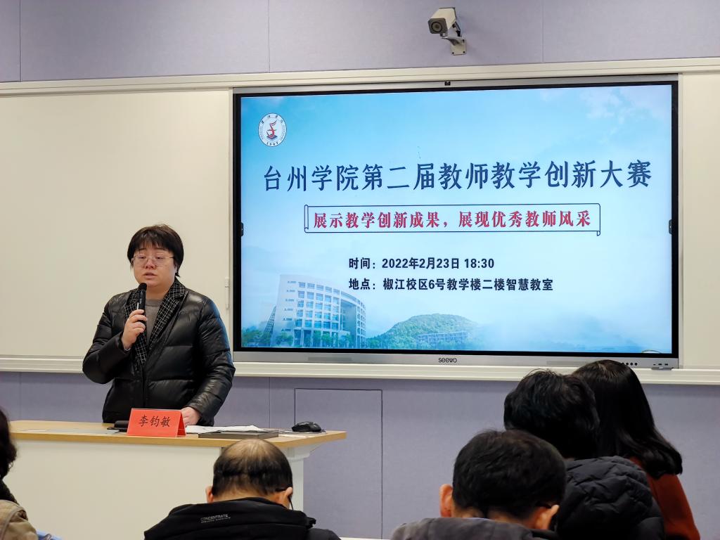 为推动信息技术与教育教学融合创新发展,引导高校教师潜心教书育人,打造高校教学改革的风向标,同时选拔优秀教师参加省高校教师教学创新大赛,2月23日晚,教发中心于椒江校区6号楼智慧教室举办教师教学创新大赛。各学院分管教学院长、教学督导担任评委,教务处处长金凌虹主持,副校长李钧敏观摩比赛并讲话。