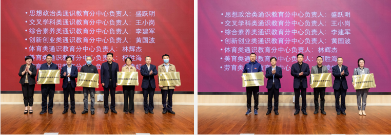 会议举行了台州学院通识教育中心成立仪式,崔凤军、陈光亭为中心揭牌;与会校领导为思政政治、交叉学科、综合素养、创新创业、体育、美育、劳育等七个通识教育分中心授牌。