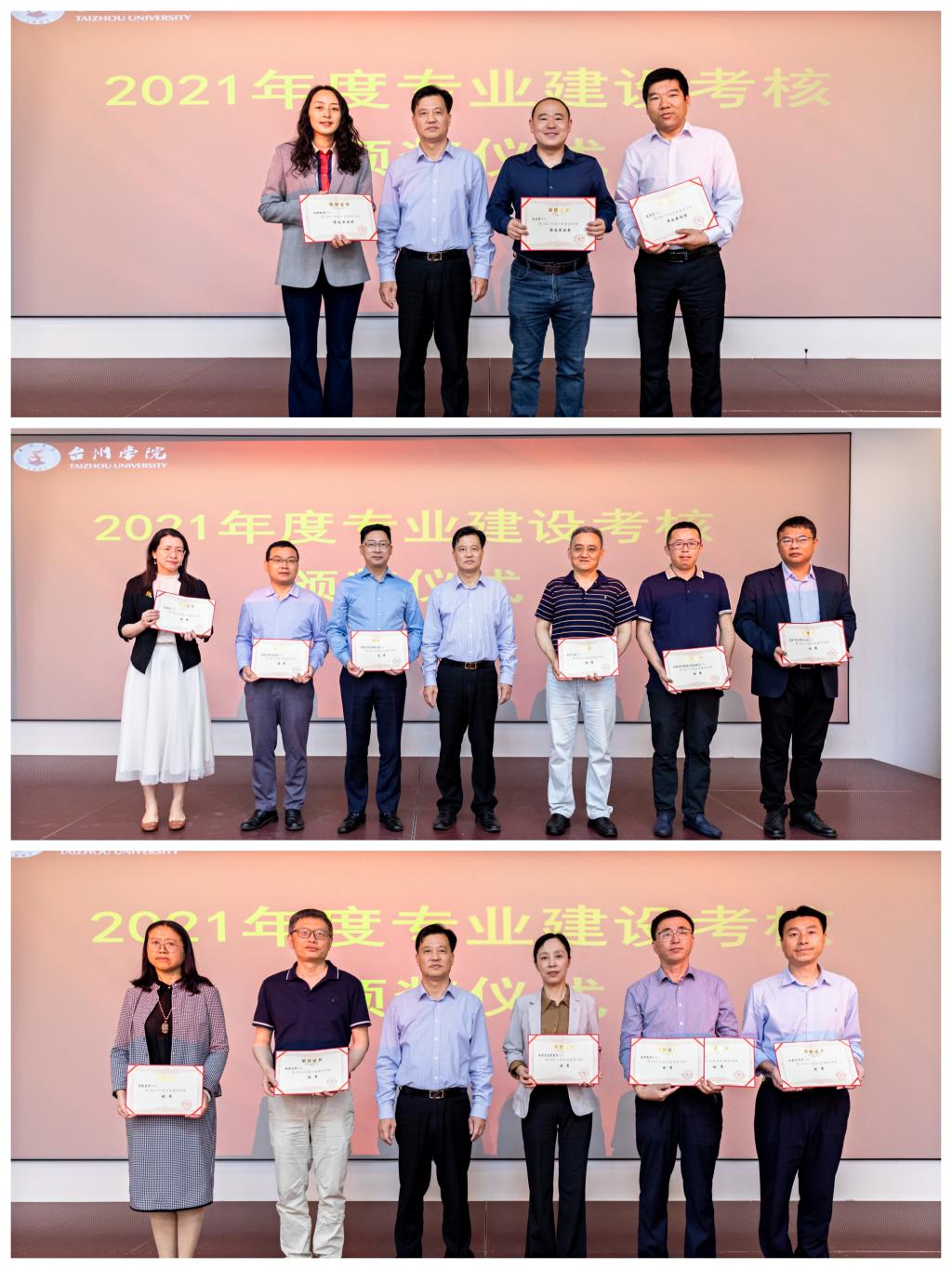 大会首先进行2021年度专业建设考核的表彰颁奖,陈光亭为汉语言文学、小学教育、数学与应用数学、体育教育、临床医学、制药工程、高分子材料与工程、机械设计制造及其自动化、土木工程、材料成型及控制工程、计算机科学与技术、护理学等12个考核优秀专业颁发了荣誉证书;为建筑学、历史学、材料物理等3个专业颁发了投入产出“绩效最优奖”荣誉证书。