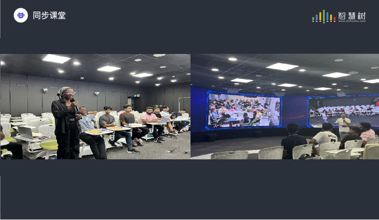 两校师生借助智慧树平台跨越距离和时差,相聚云端,共享好课。陈老师采用双语讲授,细致阐述相关知识点,两校同学们积极参与,实时交流、互动频繁,气氛热烈。