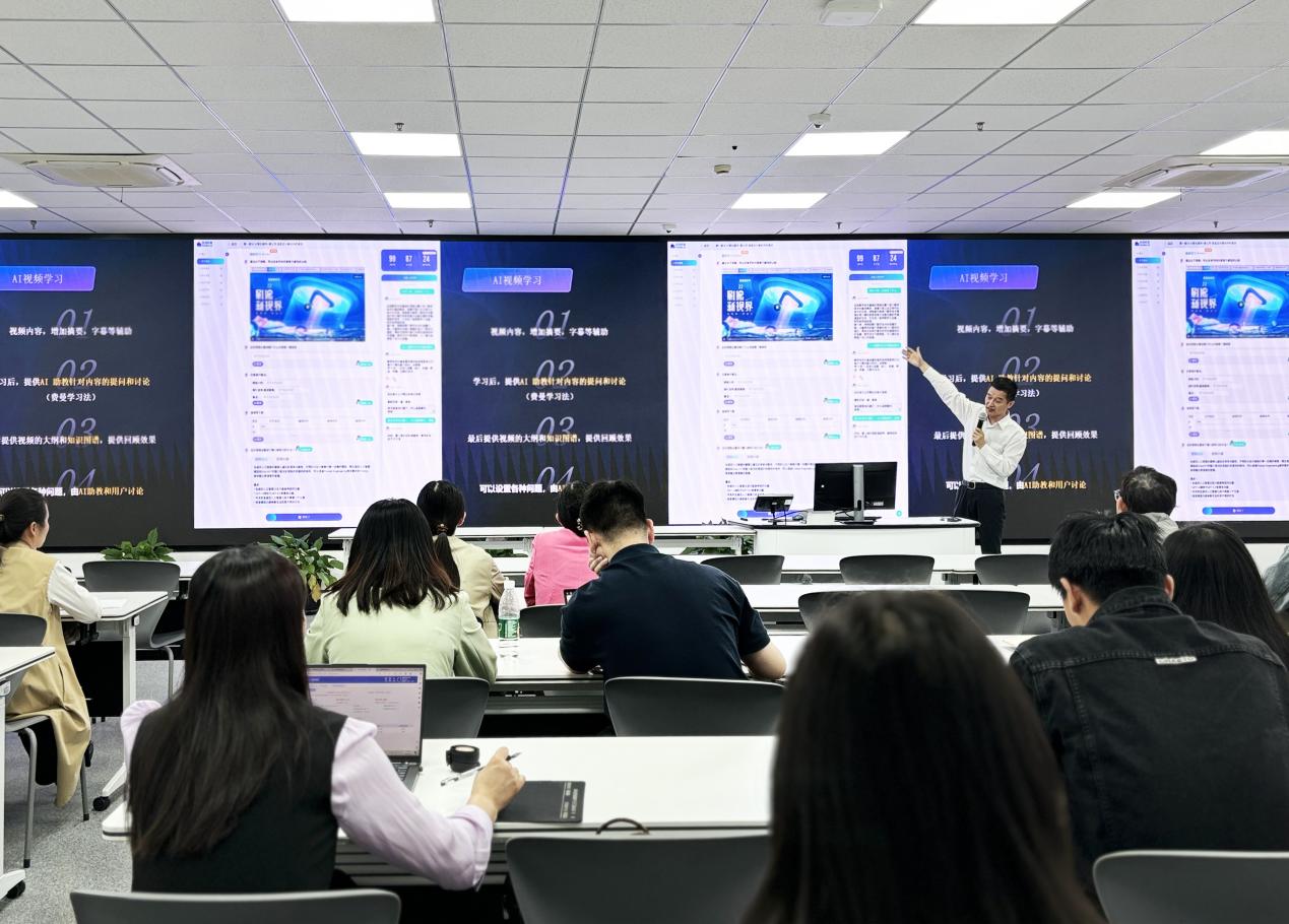 为增进对数字技术应用于教育教学的认识,了解人工智能对教师及课堂教学带来的的影响与变化,2024年4月25日下午,在椒江校区1号楼213直播教室,教务处邀请了金智教育、超星以及智启蓝墨云集团,分别做AI助教、知识图谱及数字教材相关内容介绍。二级学院教学院长、专任老师、教务员等近50名相关人员参加交流。