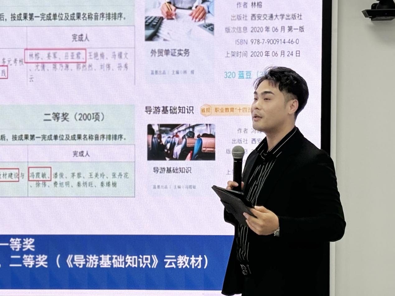 随后,智启蓝墨的金满库以“数字教材建设和出版新思路——数字教材智能一体化体系构建”为题,从发展趋势、政策解读、案例分享、制作思路、制作方法等方面对数字教材进行了介绍,并现场展示了云教材的使用方式。