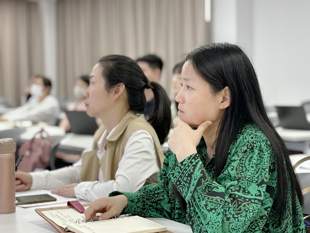 参会老师积极提问互动。教务处副处长张燕对交流会进行总结发言。她认为面对教育数字化浪潮的到来,各位老师应积极学会运用数字技术开展课程建设,提升课程质量。但仍要明确数字技术的只是起辅助手段,最终不能忘了发挥教师的主观本位作用。
