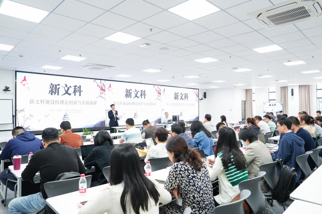 胡友峰教授围绕“为什么要建设新文科、建设什么样的新文科、怎么建设新文科”,旁征博引,以宏大战略眼光、哲学思辨视角、图文并茂方式介绍了新文科的发展历程,阐述了新文科建设引领的深层逻辑和文化价值观安全的内在要求。他凝练了“一个战略、二大体系建设、三类人才培养、四大核心要素”,指出了新文科建设的路径与框架。他指出,中国高等教育进入普及化阶段后的多样化、学习化、个性化、现代化特点,决定了新文科建设要具站在教育强国、高教何为、文科何为的战略高度;从构建中国自主的知识体系和人才培养体系两大建设体系出发,为国家和社会培养基础学科拔尖人才、国家亟需的高层次人才、拔尖创业人才,关键在于建设好课程、教材、实践、师资四大核心要素。他强调,新文科建设是以需求为导向的改革,要脱虚向实,摆脱“过去的人教着现代人面向未来”的困境,建构工科化的实践体系;新文科之“新”,在于新时代和创新性,要开展新制度、新模式、新课程、新教法。
