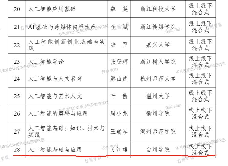近日,《浙江省教育厅办公室关于公布2025年省级一流人工智能通识课程立项名单的通知》(浙教办函〔2025〕10号)发布,全省共有42门课程立项为省级一流人工智能通识课程,我校方江雄老师主持的《人工智能基础与应用》课程成功入选,彰显了学校在人工智能教育教学领域的建设成效。