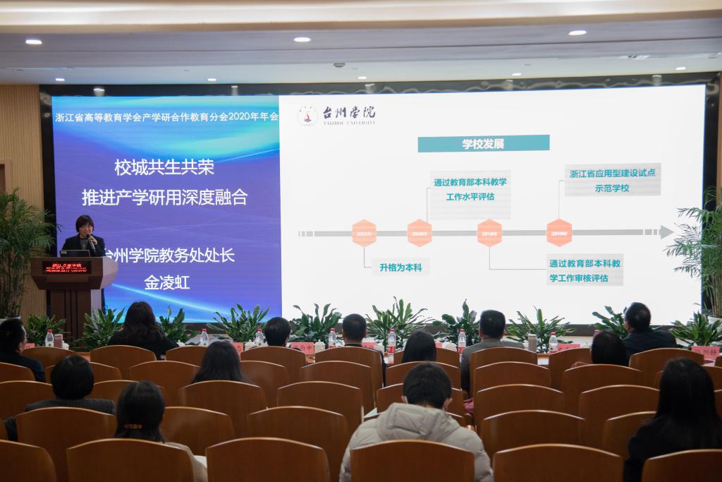 12月4日,浙江省高等教育学会产学研合作教育分会2020年年会在浙江万里学院钱湖校区召开,教务处处长金凌虹参加会议并代表地方本科高校在会上做题为《校城共生共荣 推进产学研用深度融合》的大会报告。报告从顶层设计、专业学科体系、培养体系和模式改革、校企共育“卓越”、“拔尖”人才等六个方面详细阐述了我校全面推进产学研用深度融合的举措和成效。
