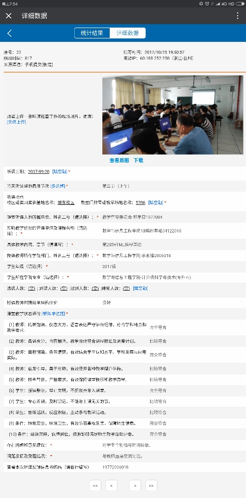 教务处负责对分类听课巡查和信息反馈受理的工作落实情况进行数据汇总,并及时告知有关人员。上述工作有助于不断完善“监测与评估、分析与反馈、改进与提升”的教学质量管理闭环工作机制,有利于切实推动教学工作方方面面的持续改进。