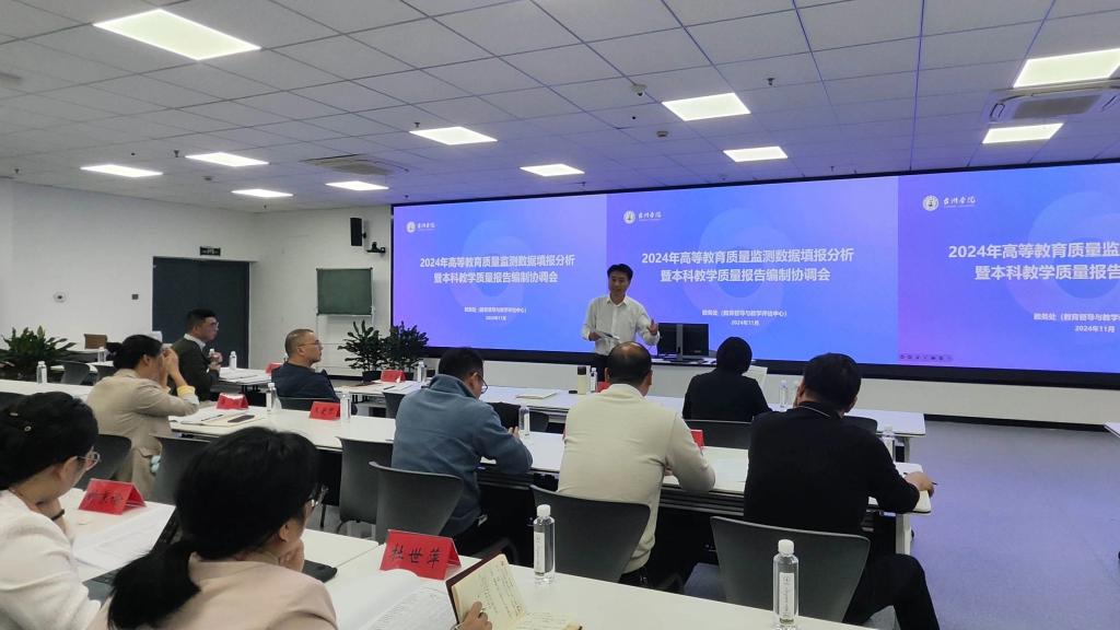 教务处传达了上级部门关于开展2024 年全省高等教育质量监测数据填报工作和做好2023-2024学年本科教学质量报告编制和发布工作的通知,汇报了前期工作的进展情况,并就核心数据进行了对比展示,对后续工作安排及材料要求做了说明。