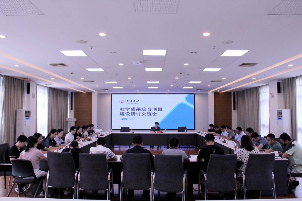为做好国省级教学成果奖培育工作,7月3日下午,学校在椒江校区行政楼第二会议室召开教学成果培育项目建设研讨交流会,校党委委员、副校长李钧敏出席会议并讲话,教务处处长金凌虹主持,2022年立项的教学成果培育项目负责人及骨干成员参会。