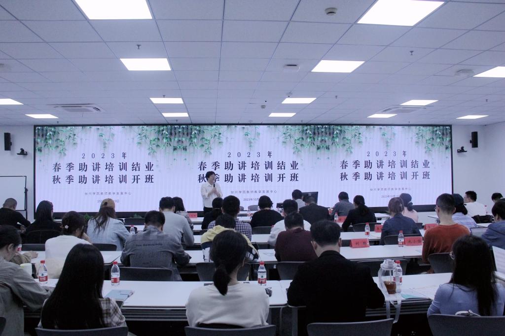 10月13日,2023年春季青年教师助讲培训结业暨2023年秋季青年助讲教师培训开班仪式在椒江举行。校党委委员、副校长李钧敏出席活动并讲话,教务处处长金凌虹主持。