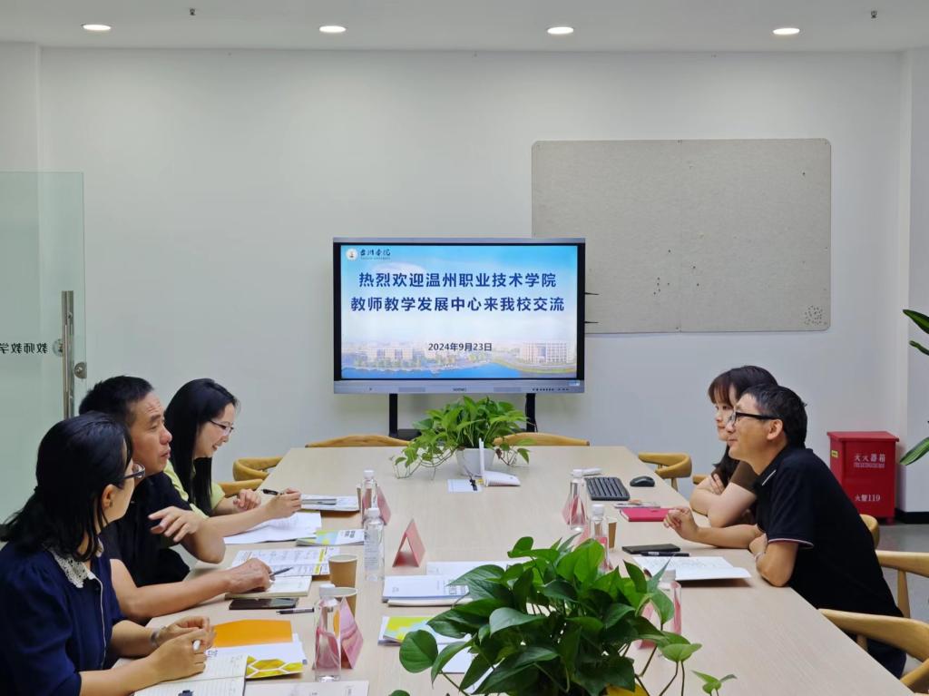 9月23日,温州职业技术学院教师发展中心主任廖新飞一行来访我校教师教学发展中心,教师教学发展中心全体工作人员与温州职业技术学院教发同仁就教师教学发展培训、教师教学竞赛等业务工作进行深入座谈交流。