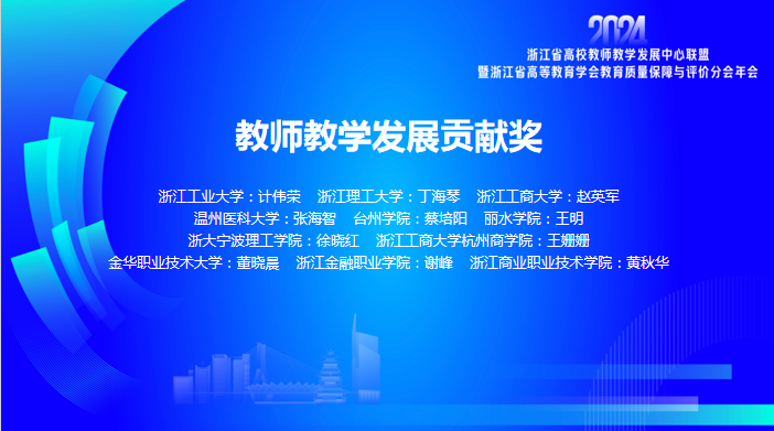 近日,2024年度浙江省高校教师教学发展中心联盟年会圆满举行,会上重磅评选出11个“教师教学发展贡献奖”,校督导蔡培阳凭借多年如一日的坚守与付出,赫然在列。